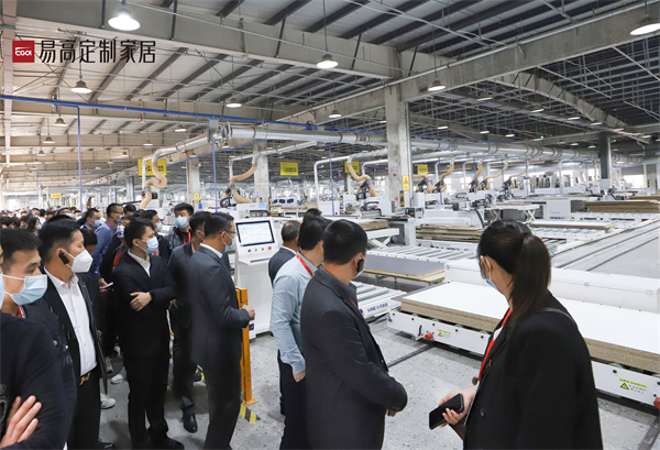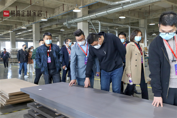 活动当天,易高家居董事长孔庆松与近300位嘉宾共同前往合肥双凤、下塘智造基地及展厅参观交流,全面了解易高的制造交付、信息技术、产品研发、品牌运营等综合实力。