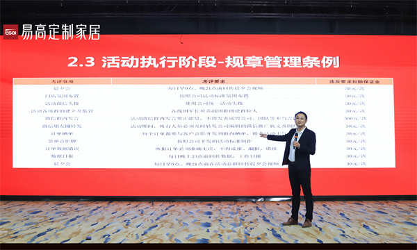 易高家居营销企划部负责人刘润书和营销推广部负责人孙宇分别对“开门红暨315全国联动”活动营销方案和执行方案进行重点宣讲,通过定人员、定责任、定时间、定进度,将营销工作落到实处。