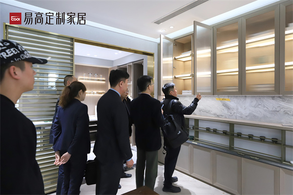海蒂诗考察团一行先后参观了易高家居下塘、双凤共计31万㎡大型智造基地和2800㎡定制新品展厅,通过对易高生产实力、产能规模、产品品类和工艺创新的考察,进一步了解了易高在生产、管理、品牌、服务等方面的优势。