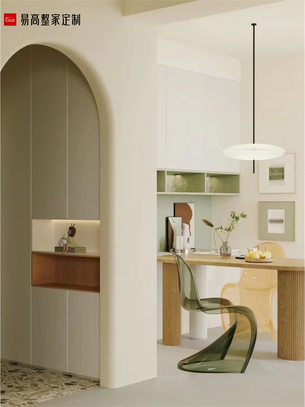 以生动鲜明的色彩解构空间美学,开放格和悬浮式吊柜藏露有序,呈现错落有致的视觉观感,沉浸其中享受被慵懒包裹的舒适感。简约的设计语言中埋藏着自由的伏笔,以松弛的姿态唤醒内心深处的独白。